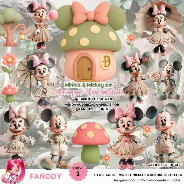 KIT DIGITAL MINNIE E MICKEY NO BOSQUE ENCANTADO-