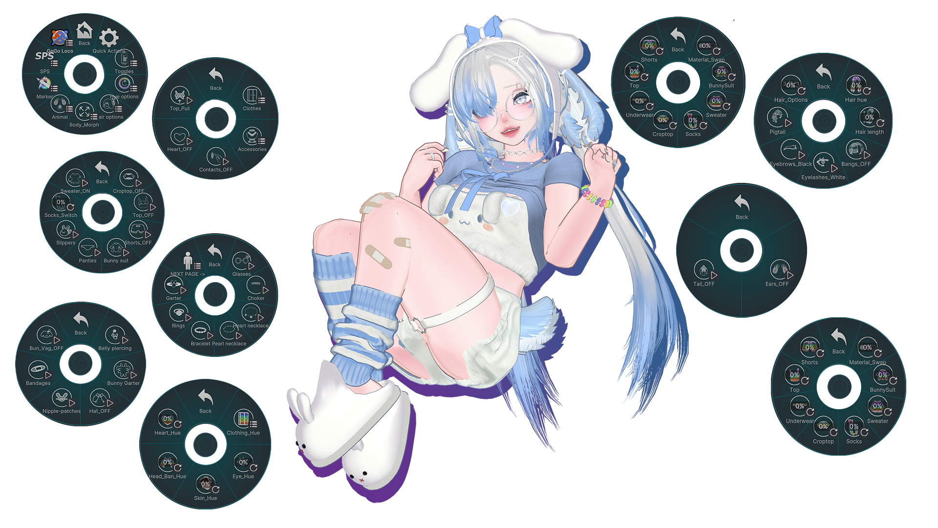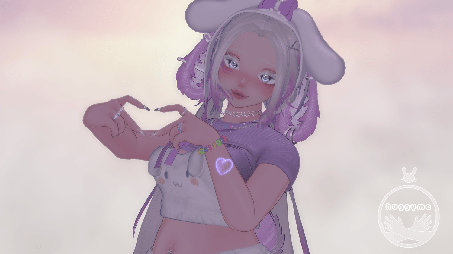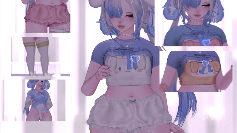 - Credits:|| Body || Head + Edit by me w. Amelia's eyebrows || Hair1+ Hair2 || Bangs ||Top + Shorts || Rings|| CandyBracelet|| Bunny-Slippers, Socks, Bandage|| Ears + Tail || Necklace || Sweater || BunGarter + Glasses (Assets removed) ||Garter2 + n♡pple patches ||BunnySuit + LongSocks || Icons, BunnyHat made by huggyme || Eye Texture ||Hair Textures || Hand_Gestures || Heart_Gesture || Glowing_Heart || Nails || choker||