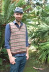 This is a pattern for a Fair-Isle style slip-over/vest. It is worked in the round and from the bottom up. The neck and armholes are worked with steeks. After the steeks have been prepared and cut, the neck and armhole ribbing is worked.