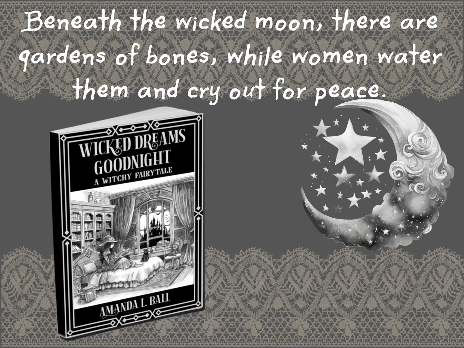 Beneath the wicked moon, there are gardens of bones while women water them and cry out for peace. The enemy thought they were clever, burning the witches, though they messed up and forgot to burn all of the witches. And now the witches are out for vengeance and revenge.