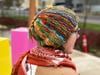 Longer leftovers version: The longer version will use 3 continuous strands throughout the entire hat, switching between yarn 1, yarn 2, yarn 3 on every row, but you’ll switch each to a new color when it runs out, or by purposefully breaking the yarn, trying to switch them at different points so that the stripes blend between colors.