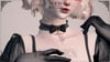 A simple velvet choker with ruffles, cameo gem, pearls, a bow and a cross charm.