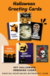 This set of 7 Halloween themed greeting cards are so cute! They are sized 5 x 7 and each is different. The inside of each card is blank so that you can add your own sentiment. I suggest you print these cards on card stock.