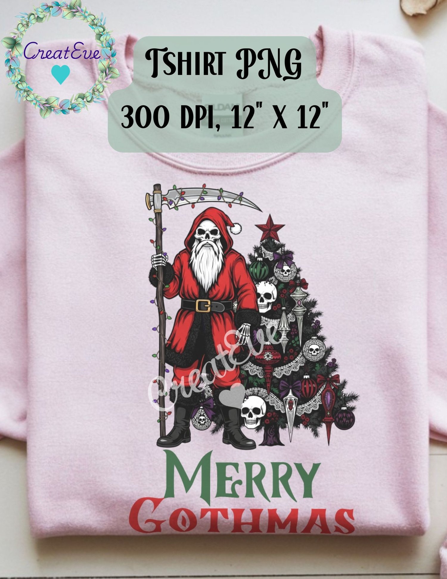 Merry Gothmas Tshirt PNG 300dpi, 12"x12"
