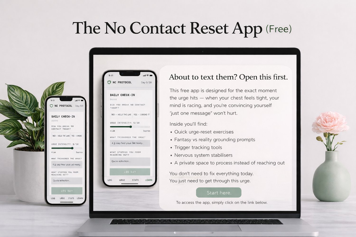 This free app is designed for the exact moment the urge hits — when your chest feels tight, your mind is racing, and you’re convincing yourself “just one message” won’t hurt.