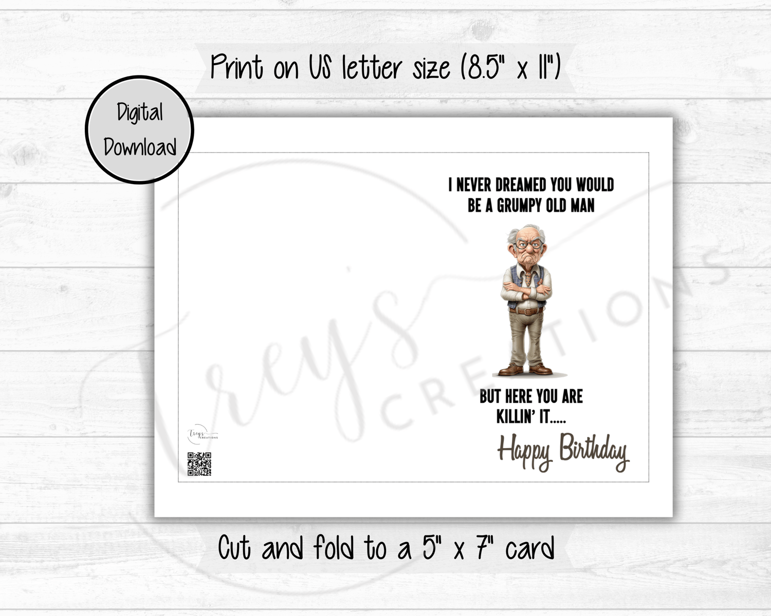 Funny Grumpy Old Man Birthday Card. DIGITAL DOWNLOAD