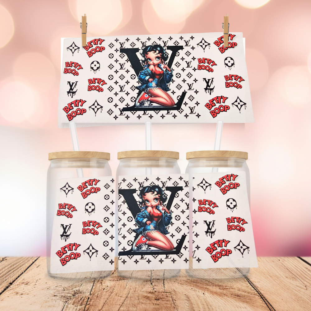 Turn heads with this luxe LV-inspired wrap featuring the fabulous Miss B! Perfectly sized to fit most 16 oz cups or tumblers, this high-fashion design adds a bold, bougie flair to your drinkware. Whether you're crafting for yourself, a friend, or a customer, this wrap brings glam and attitude to every sip.