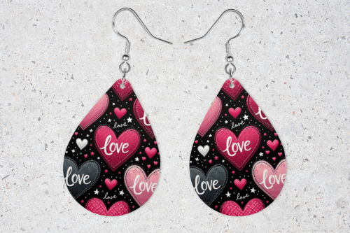 Valentine's Day Sublimation Earring Designs - Hearts with "Love" Word Inside