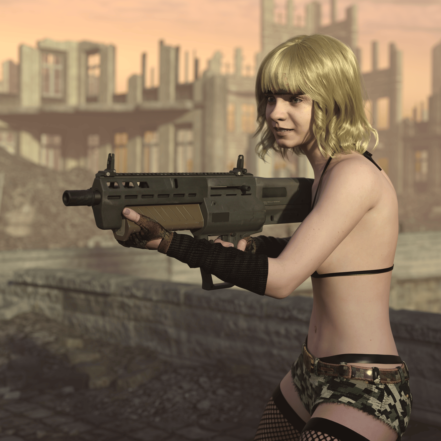 A relatively new super cool looking shotgun, with a bullpup configuration (kinda). Large capacity tubes and some tactical attachments. Converted and rigged for use with DAZ. Trigger, safety, bolt, mag, etc also rigged for more realistic pictures. Also includes a silencer and a light. Includes 2 barrel lengths