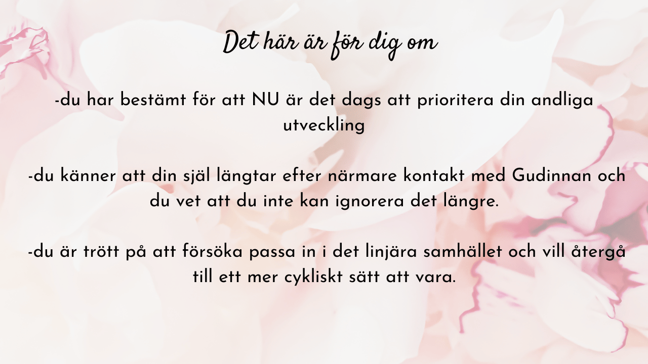 Under de fem veckorna kommer jag guida dig till att sakta ner, andas lite djupare och öppna ditt hjärta, sinne och själ till den universella kreativa kraften som är Gudinnan.