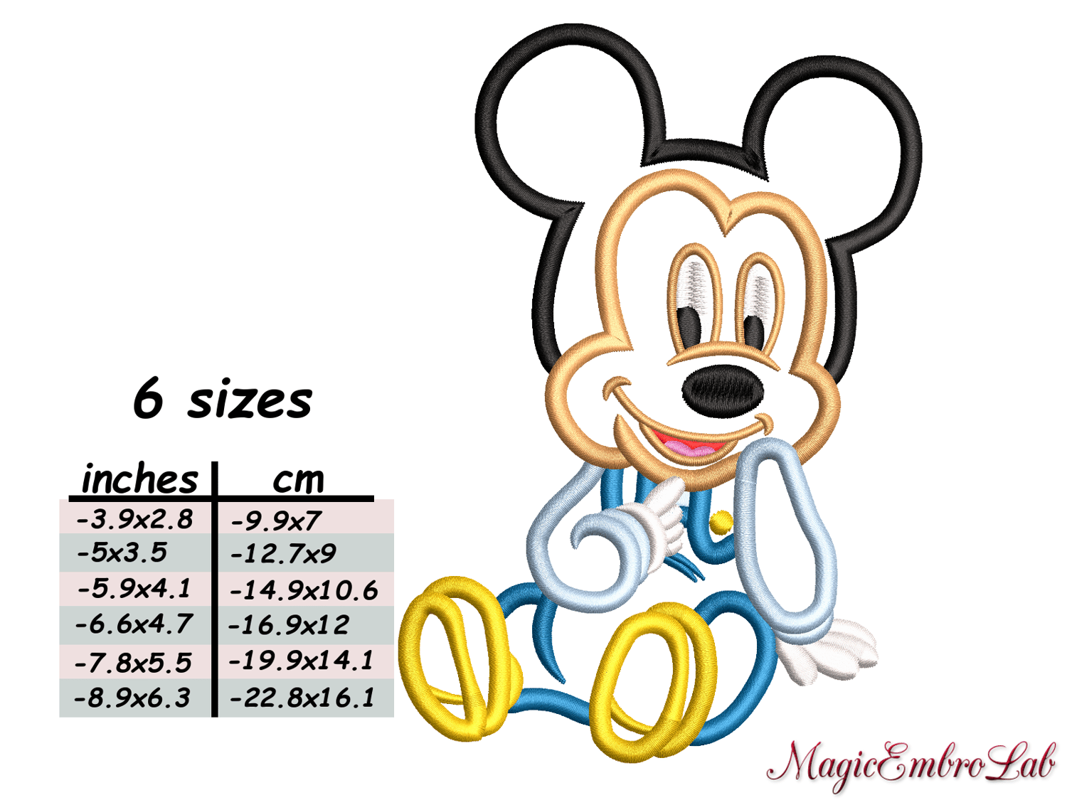 Mickey Baby APPLIQUE, 6 sizes, Instant Download