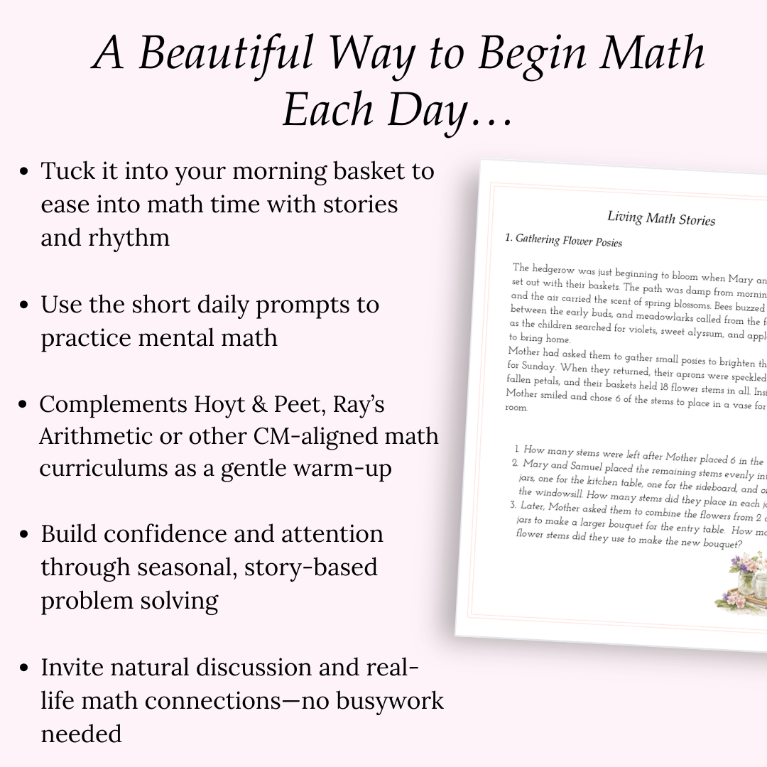 It reflects the kind of math Charlotte Mason encouraged—practical, relational, and naturally woven into home life.