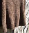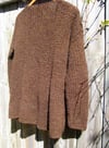 The Sample pictured is Size 44”/112cm, and knit in Lopi Einband (100% Icelandic Wool, 273 yd (250 m)/1.75 oz (50 gr) per skein). Color used in sample is named chocolate or shade #0867.