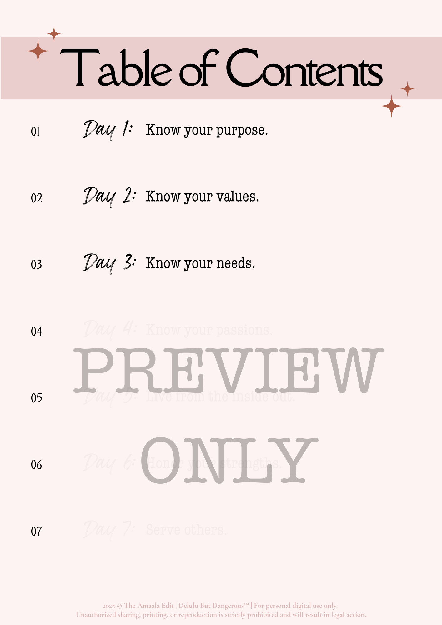 Whether you print it or use it digitally, this workbook is your personal 7-day reset — a quick but transformative way to pause, get perspective, and step back into your power.