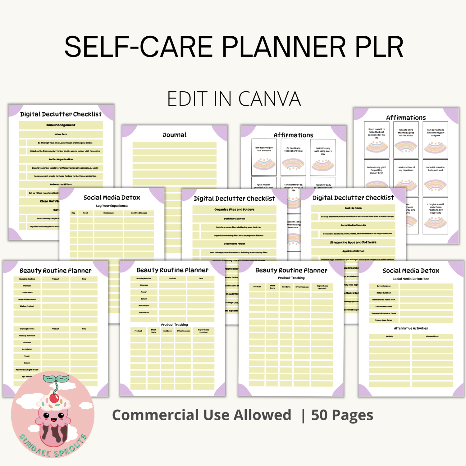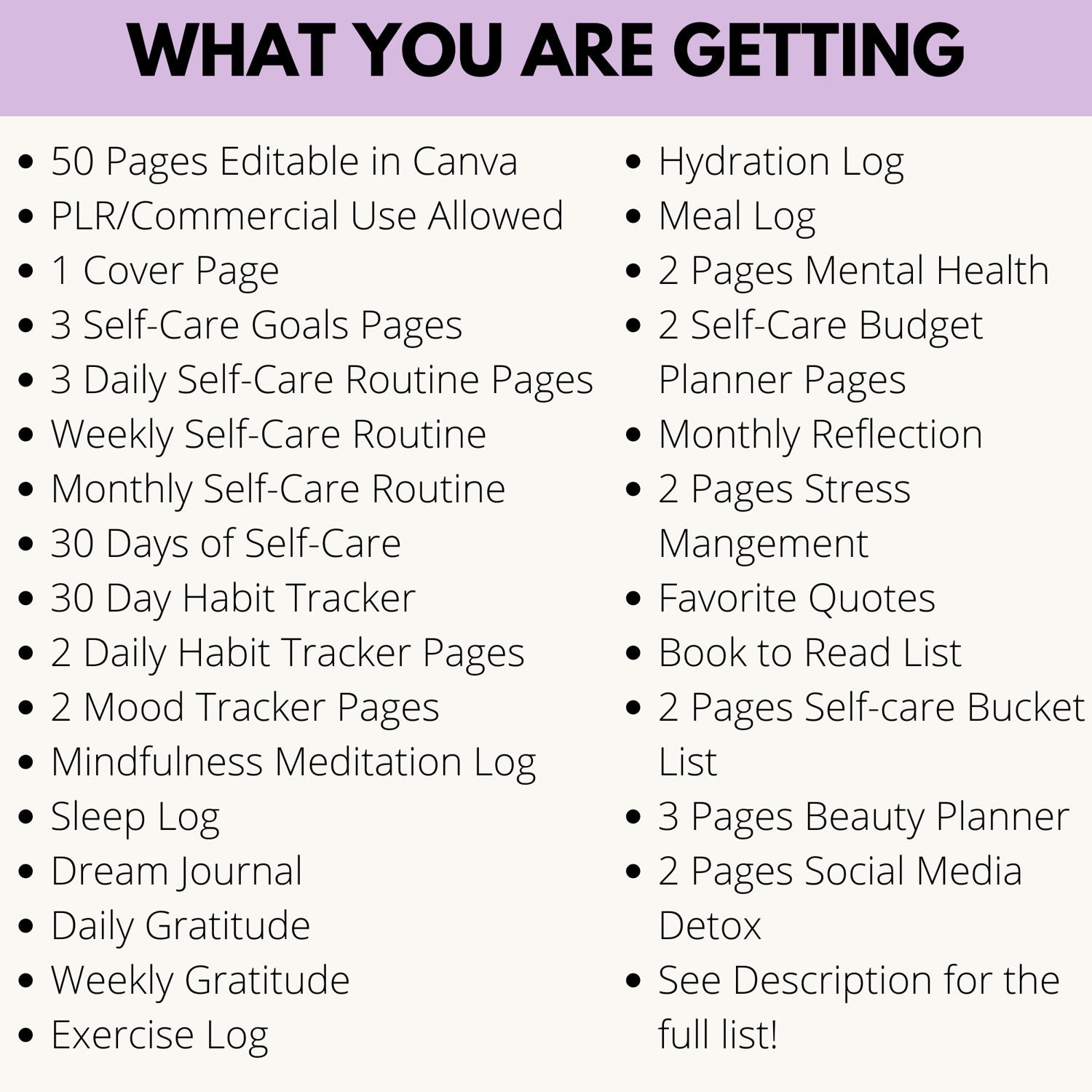 Self-Care Planner PLR is perfect to use for yourself or sell to your audience. You are given commercial use rights which means you can sell the end product as personal use only. Don't like the colors? You can change them easily! I recommend editing the planner as much as you can, so you stand out from the crowd.