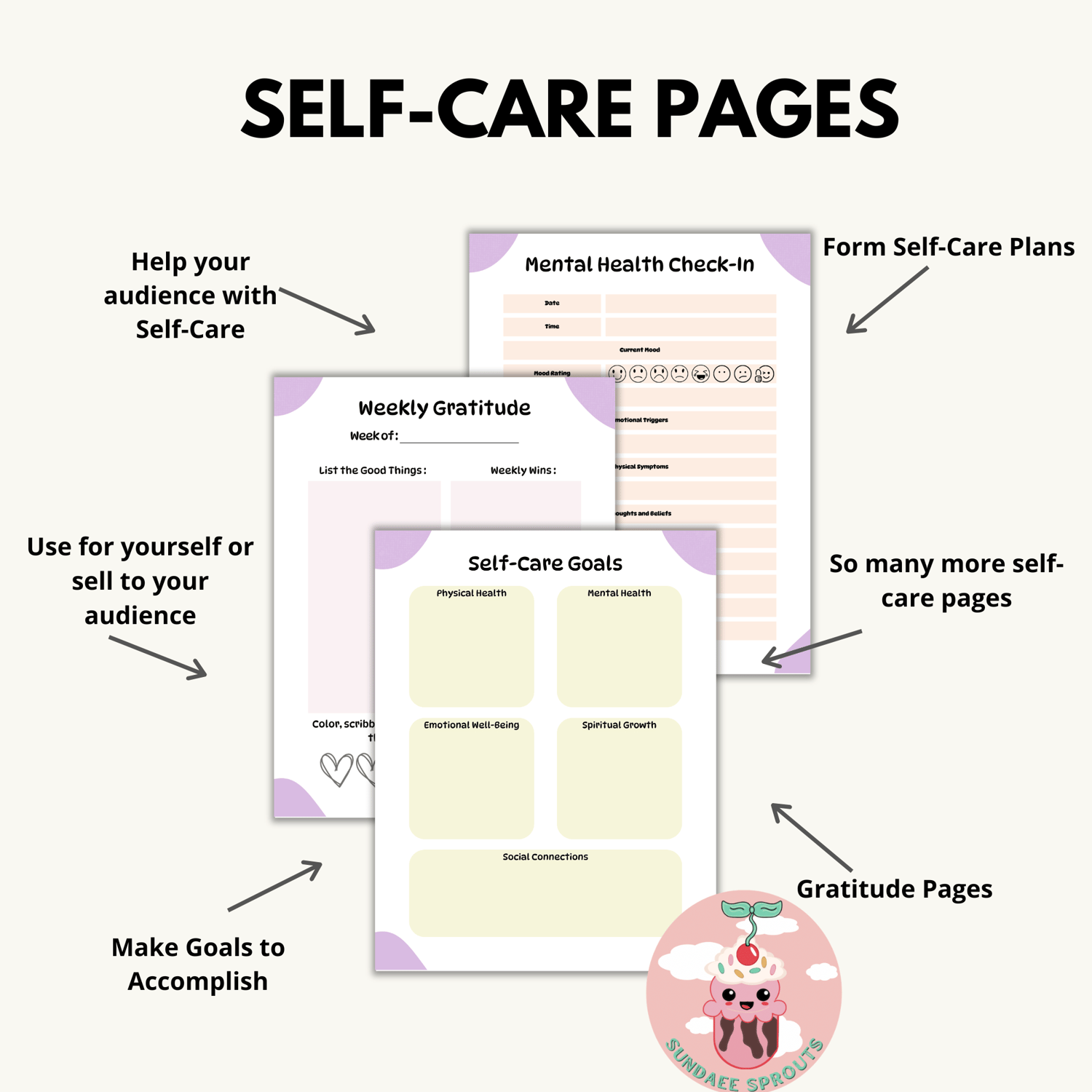 Beautiful Self-Care Planner that was made with love and soothing vibes. Comes with many helpful pages to ensure you're prioritizing your self-care through goals, logs, a mental health check-in, and so much more!