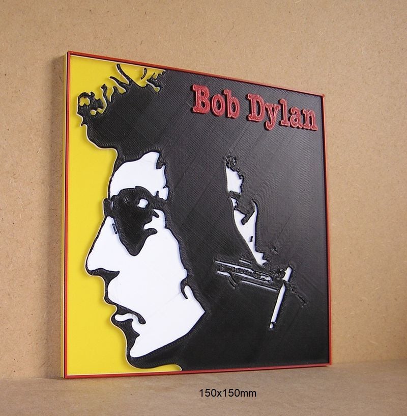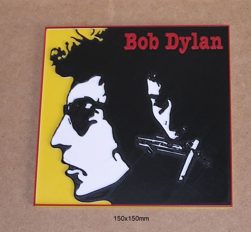 Bob Dylan-2, Poster with logo of a music group and singers, these STL and Gcode files have been created to be printed in various colors with any FDM type printer. The color changes have been made with the Elegoo Neptune 3 Pro printer, but they can be printed on any printer.