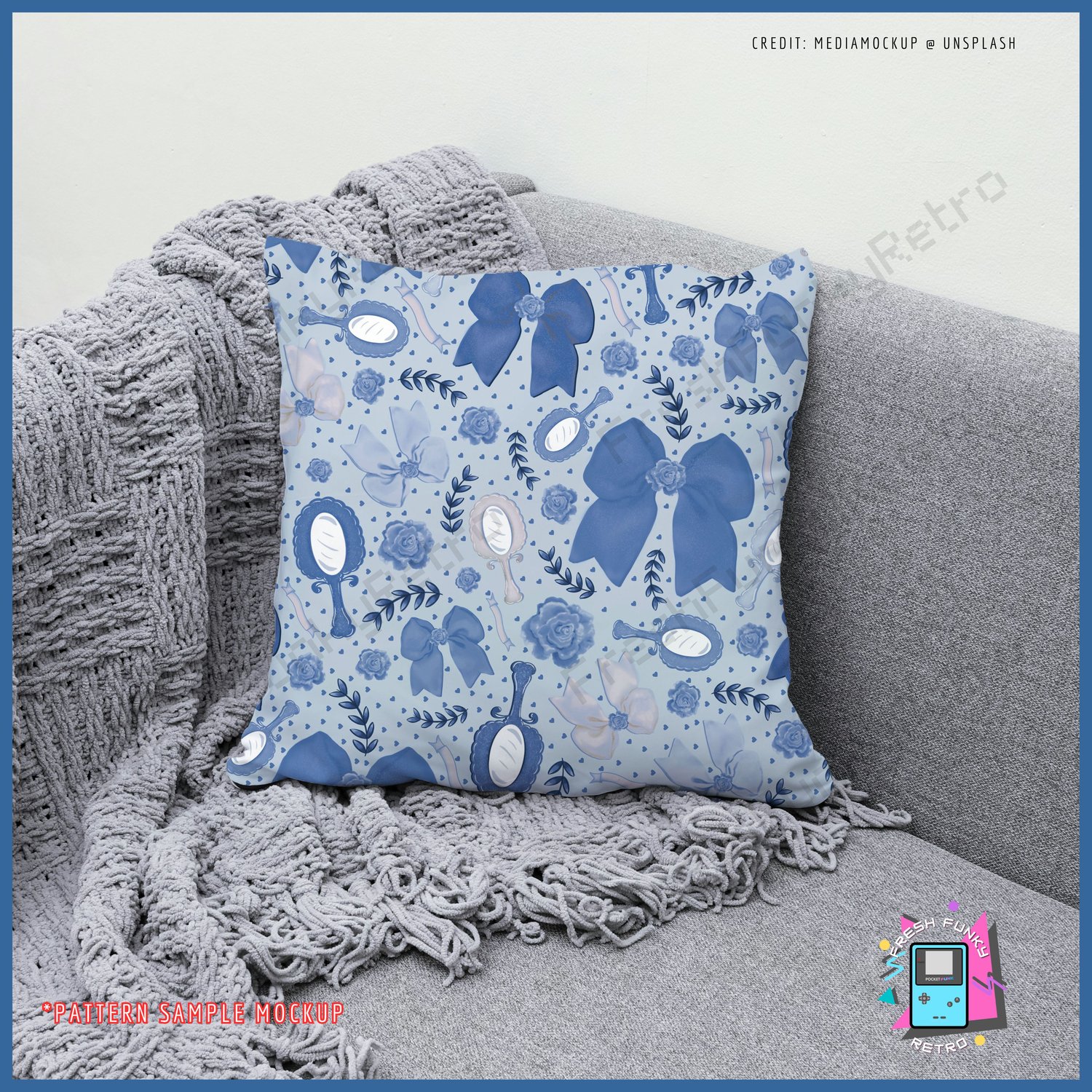 Romantic Blue Bows and Roses Seamless Pattern for Personal or Commercial Use, Bows and Roses Digital Paper | Instant Download