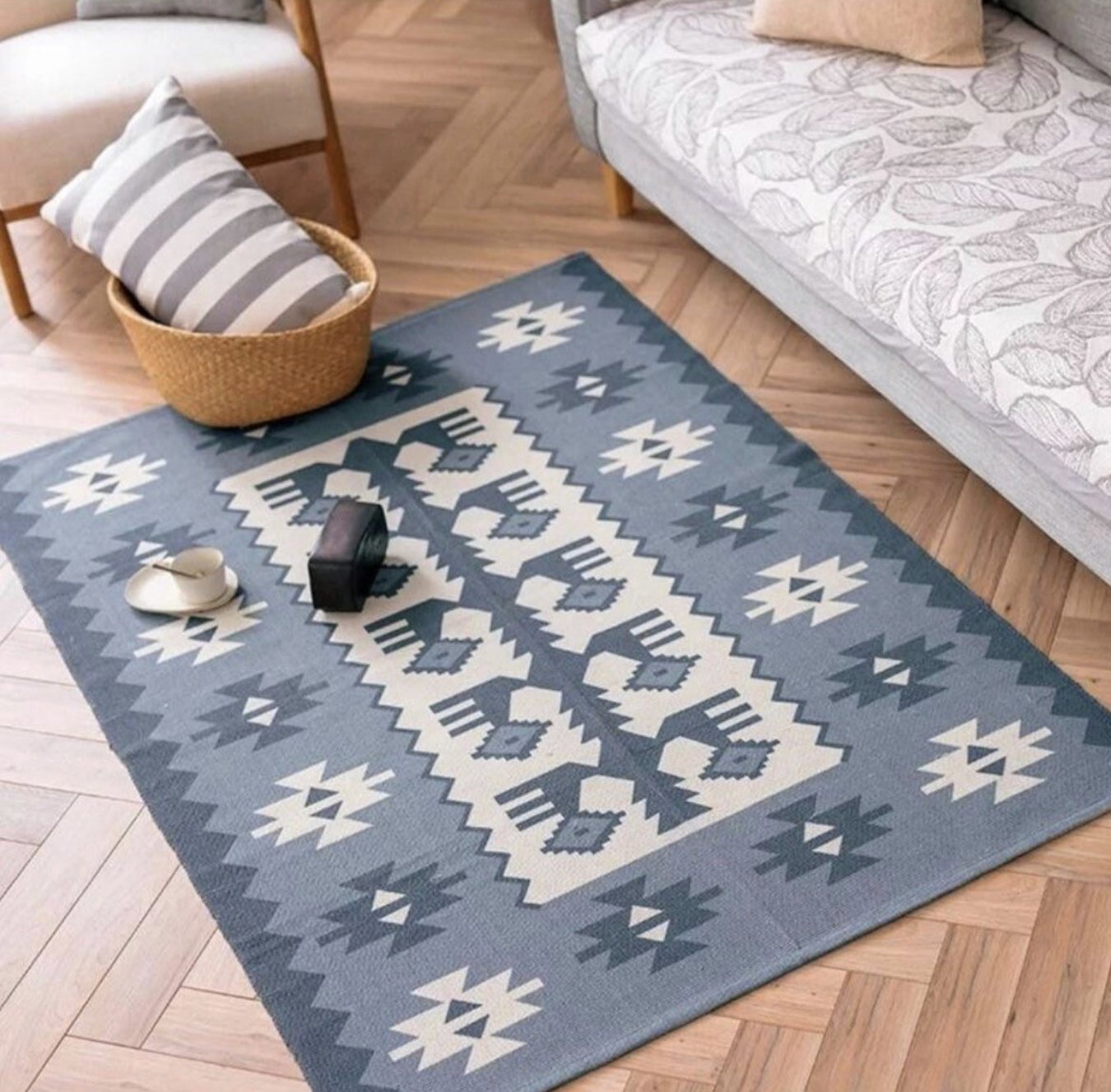 Elevate your home's aesthetic with the captivating Aztec Echo Woven Rug. This rug isn't just a floor covering; it's a statement piece, blending contemporary style with a touch of timeless geometric influence.