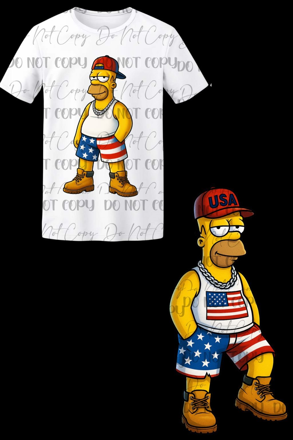 Each image is high-resolution with transparent backgrounds, ready to drop into your design software and make your merch POP. Whether you’re team Lisa, Bart, Homer, or Milhouse, there’s something in this pack for every fan with bold USA drip.