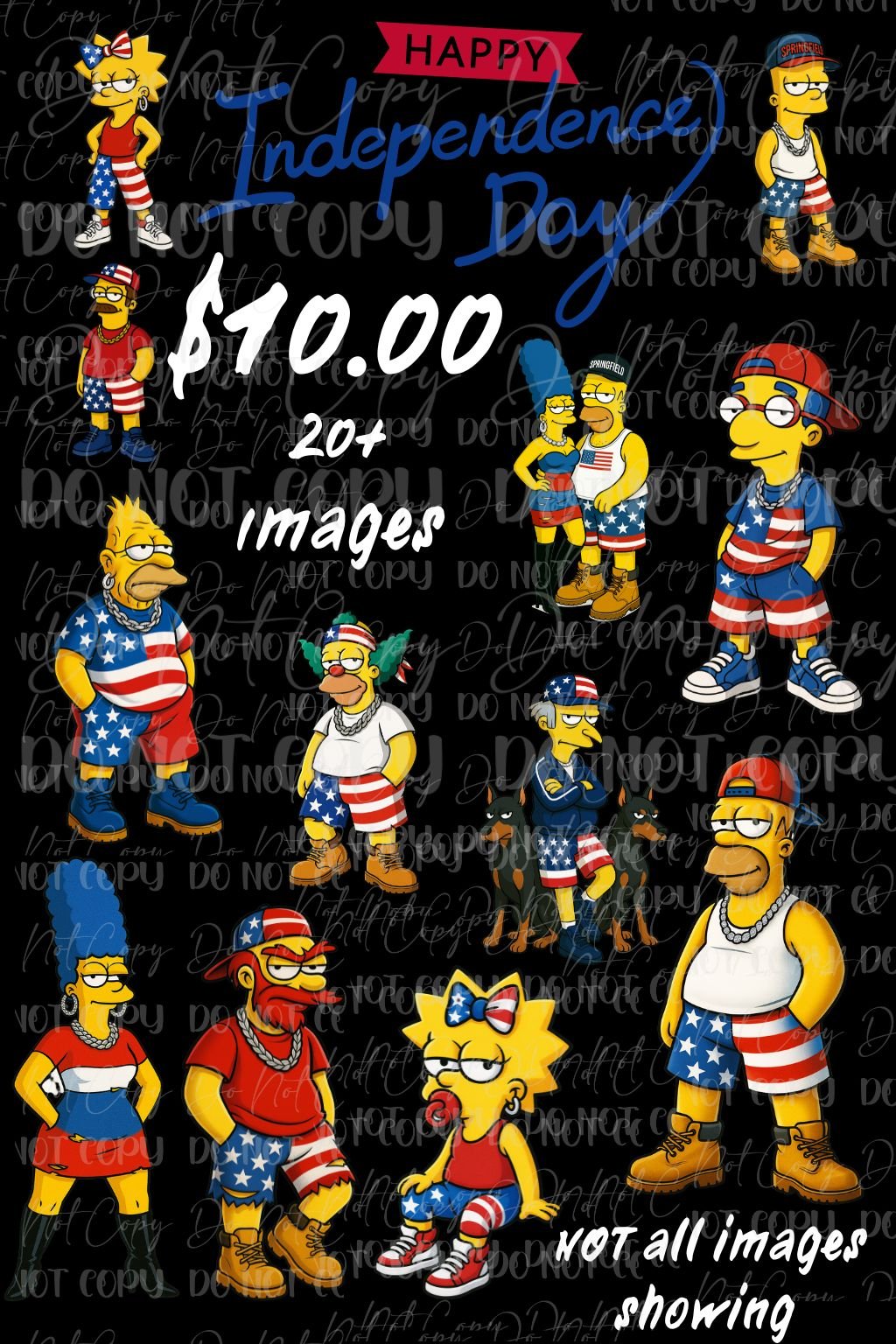 Celebrate Independence Day with attitude! This Simpsons-inspired 4th of July digital bundle features over 20 high-quality PNG images of your favorite yellow characters decked out in red, white, and blue streetwear. From cool chains to Timberlands, these designs give off major urban baddie energy—with a patriotic twist.