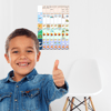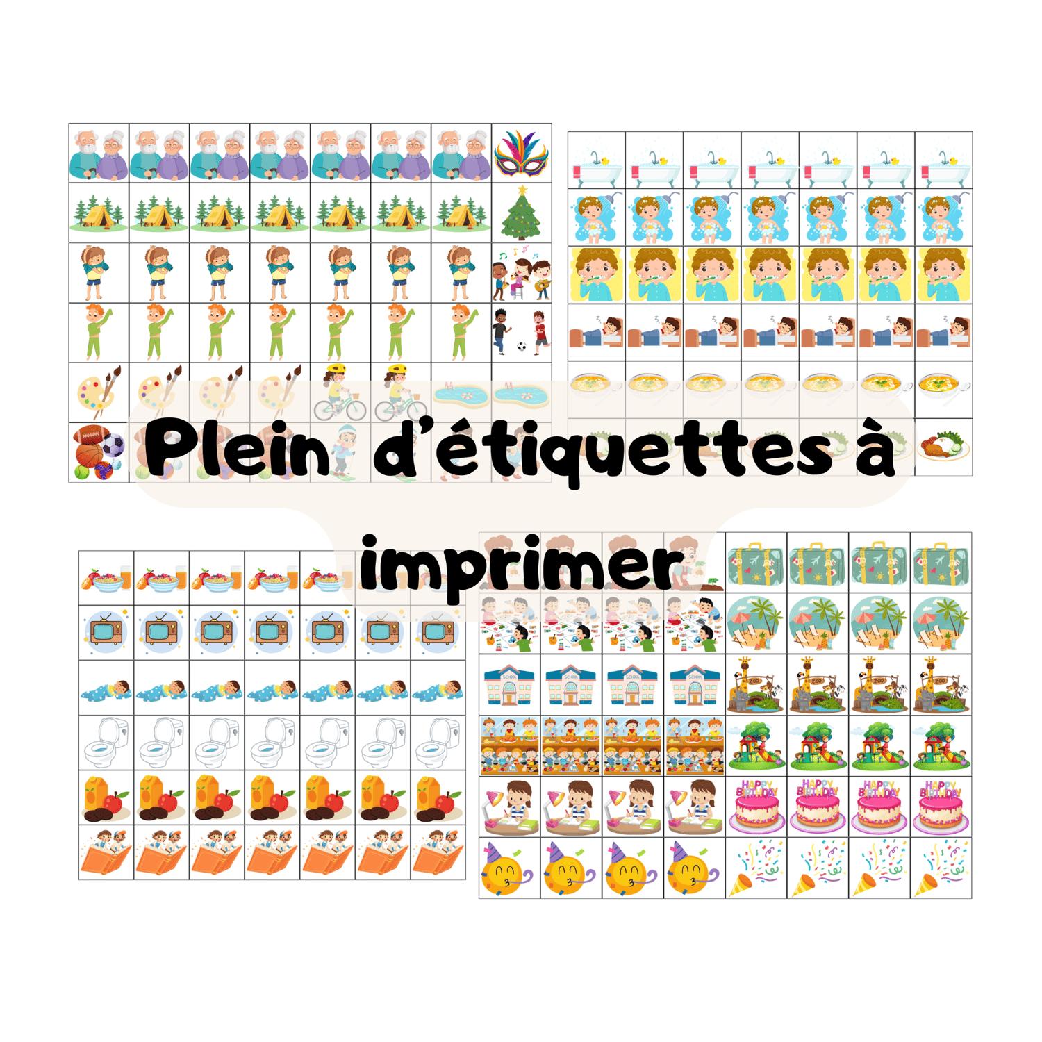 Préparez le planning : Imprimez et plastifiez le planning ainsi que les 38 étiquettes. Découpez-les et gardez-les à portée de main.