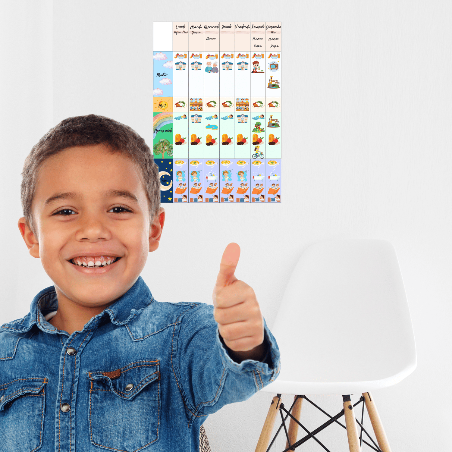 Ludique et visuel : idéal pour rendre l’organisation de la semaine amusante et motivante pour les enfants, dès 2 ans et demi.