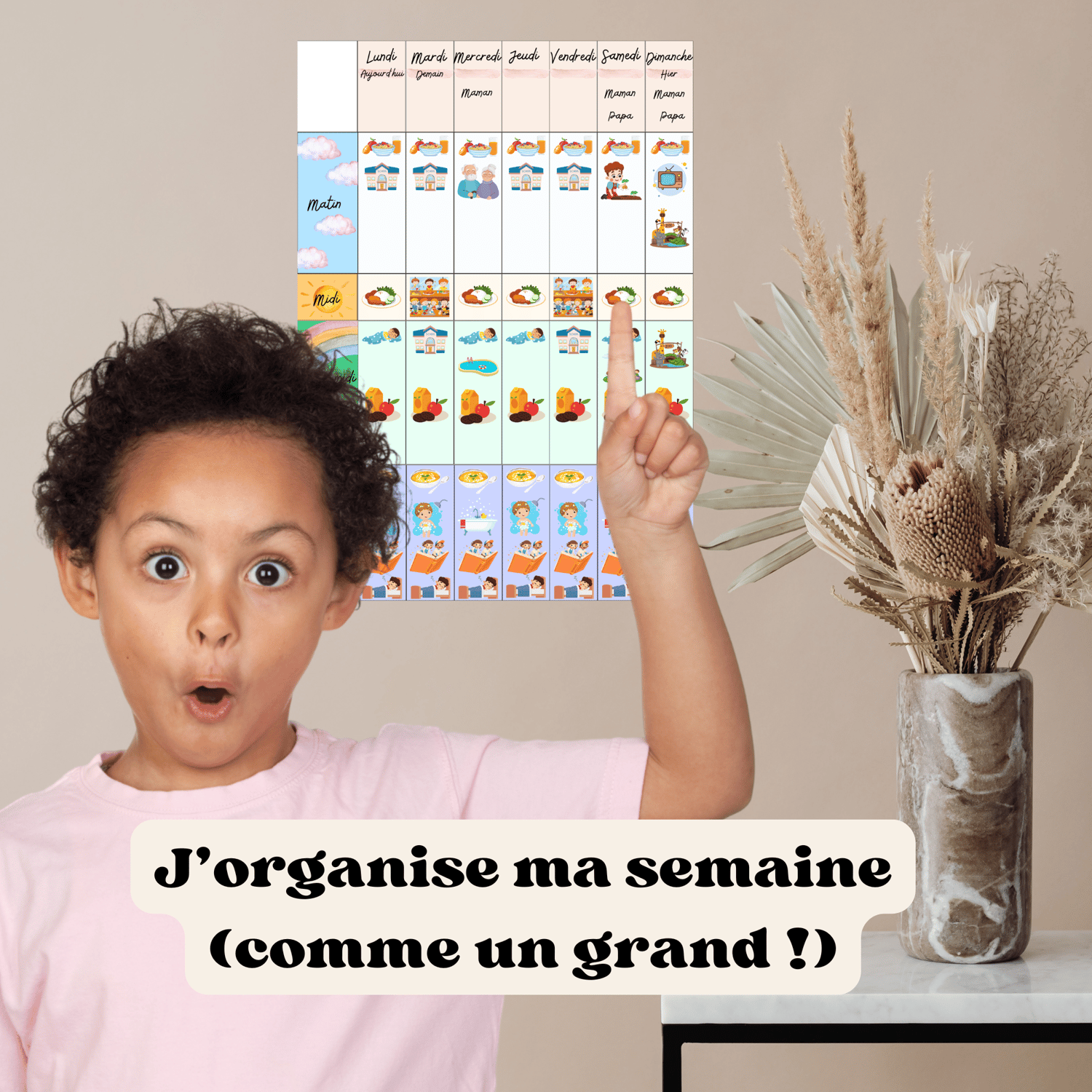 Motivation : Permet à l’enfant de visualiser sa semaine et de mieux comprendre son emploi du temps.