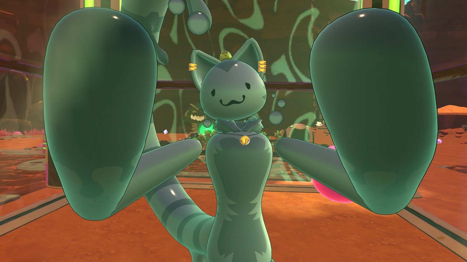 Tabby Slimes are common, feline-like, meat-eating slimes in Slime Rancher (1 & 2) with striped bodies and, notably, a habit of stealing food. They are docile but jump high, often requiring an air net upgrade for corrals.