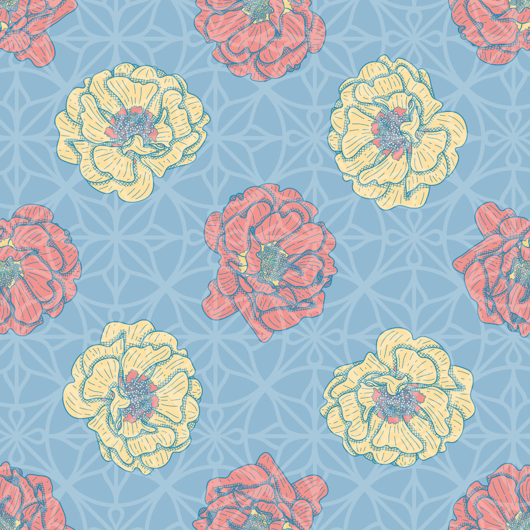 Portulaca Grandiflora Blossoms Vector Background Pattern