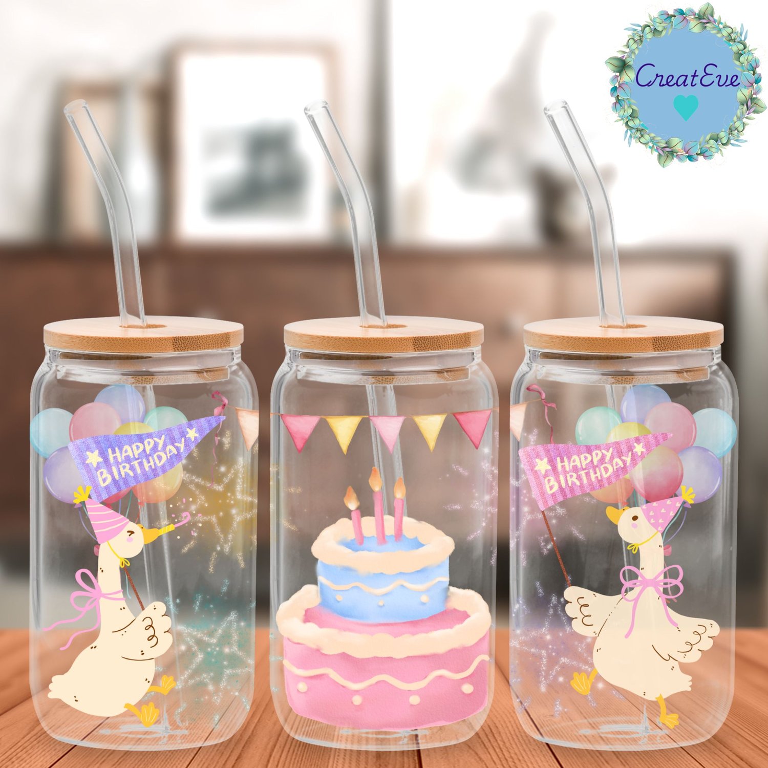 Birthday Geese 16oz Glass Can PNG, 300dpi, 9.75" x 4.8"