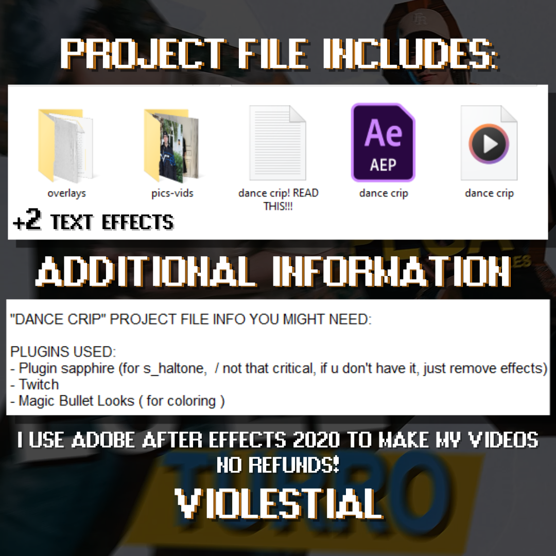 You may need a basic understanding of how to use after effects before purchasing (because I use a lot null layers and 3d futures). My files also might be heavy as they contain a lot of layers, but I don’t use that many plugins and make everything myself with basic ae futures, so it’s most likely will be fine and load normally!