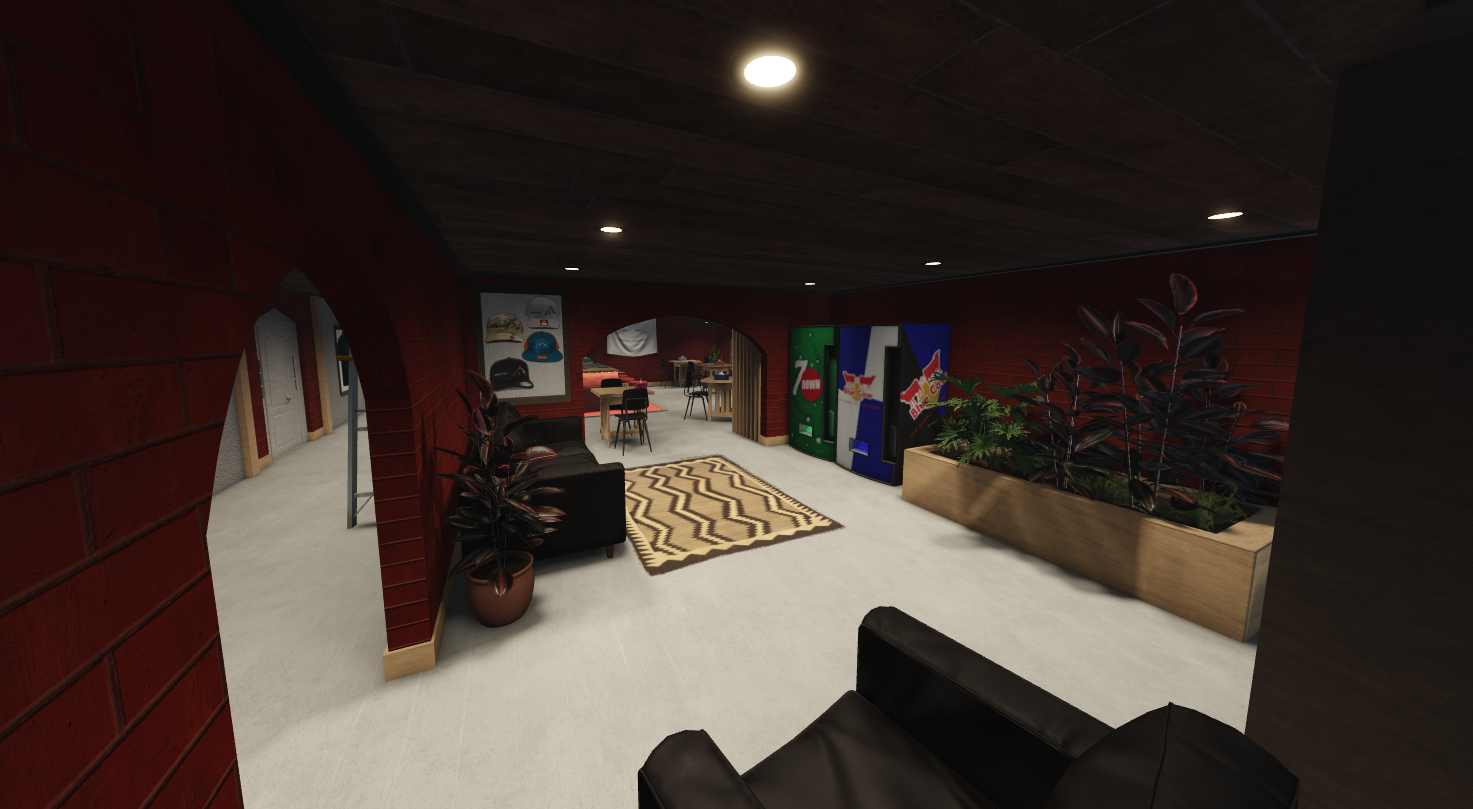 - Every building can be entered, interiors are designed