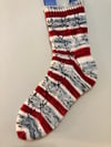 Yardage: Approximately 420 yards. Amount will vary depending on your foot size and the length you knit the leg.
