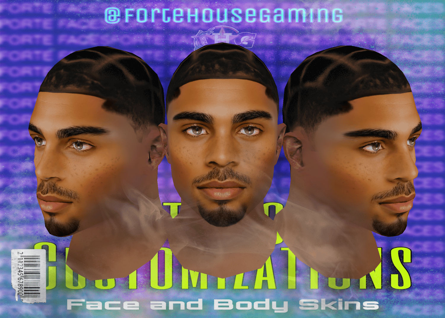 - Custom chin hair, tattoos, and lip detailing for added personality