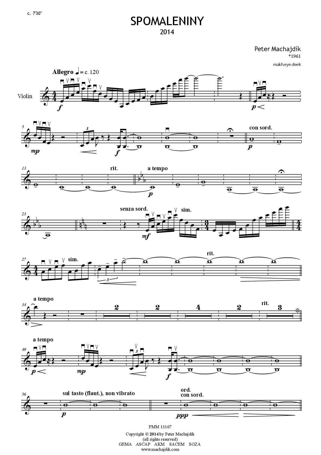 Peter Machajdík: SPOMALENINY for violin and piano (Digital Sheet Music) [score and parts]