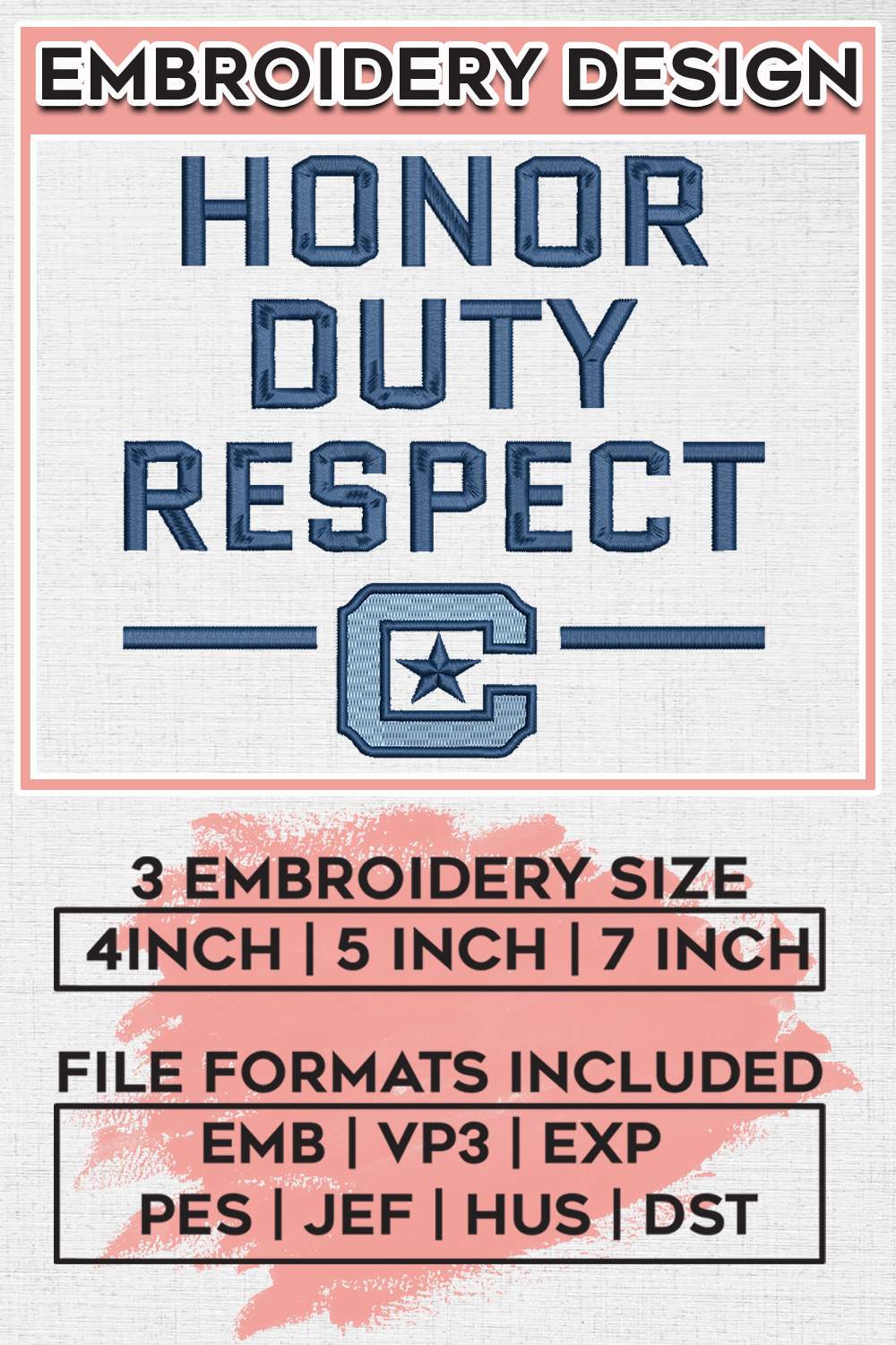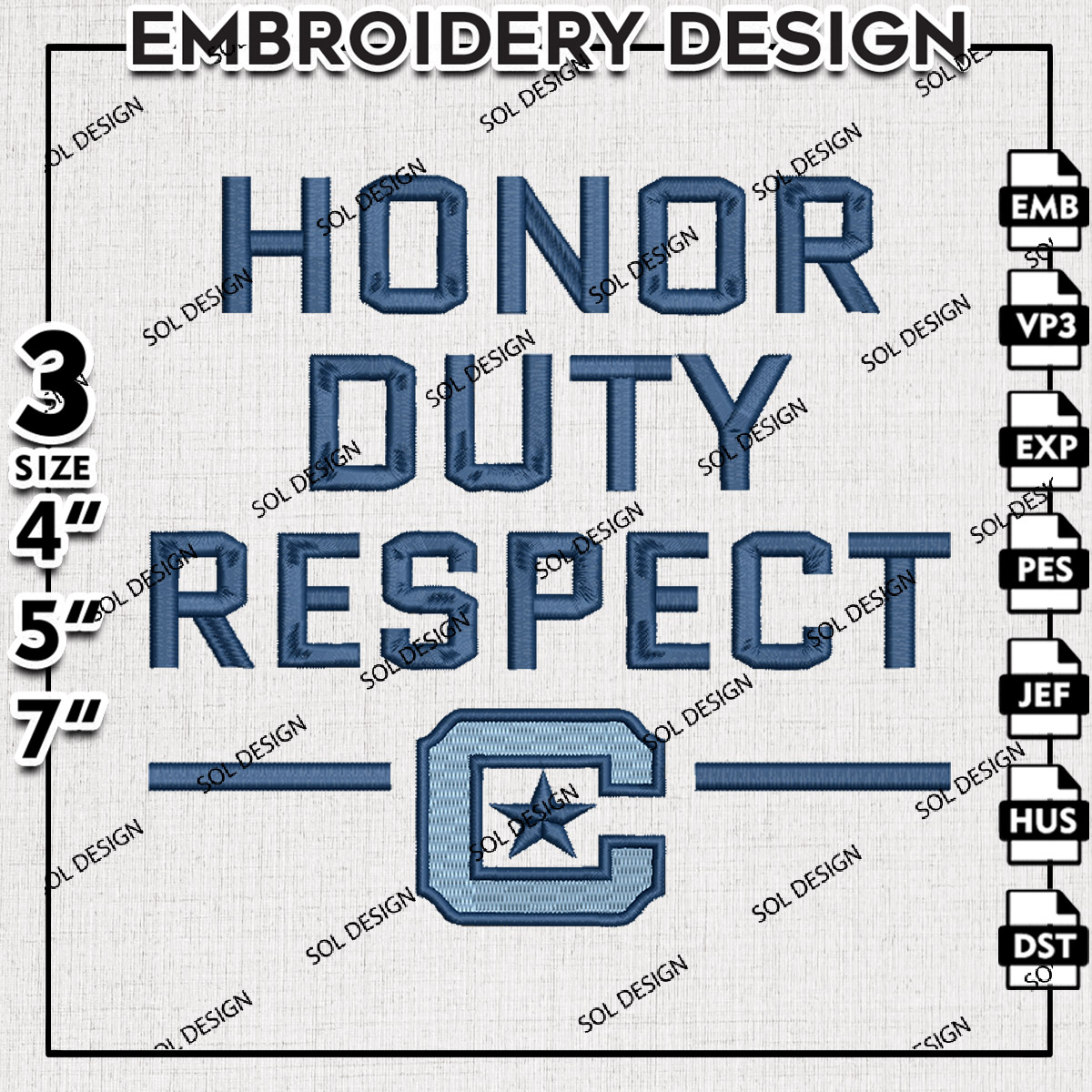 Honor Duty Respect Bulldogs Football Team Logo Embroidery Files, NCAA The Citadel Bulldogs Team Embroidery, NCAA College Football Teams, The Citadel Team Emroidery, 3 sizes, Machine embroidery designs, Digital Download