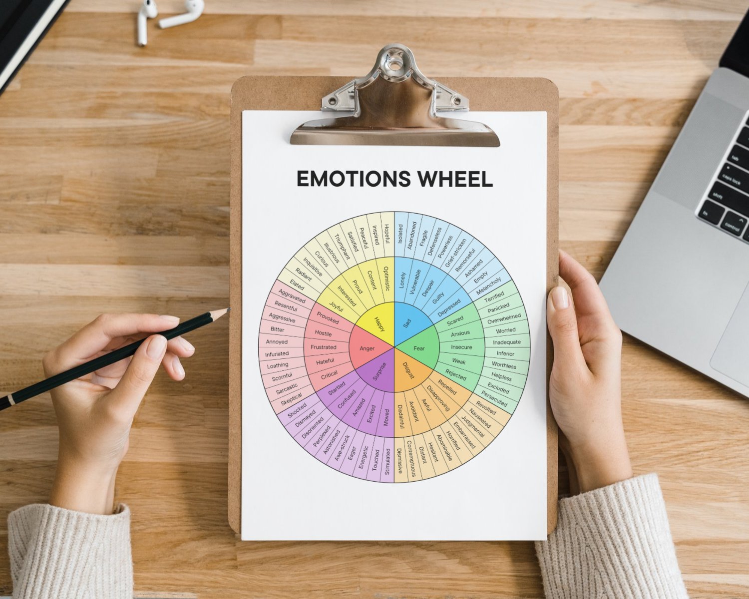 Bring depth to your therapy sessions with this printable Emotion Wheel. Also known as the emotions wheel, feelings wheel, or emotional wheel, it provides a structured and visual way to explore the complexity of human emotions. This wheel of emotions encourages meaningful dialogue and supports self-discovery throughout the therapeutic process.