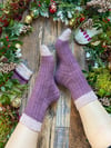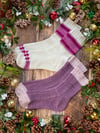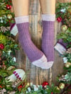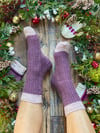I designed this sock with beginners in mind using super simple stitches to create a festive and interesting design that anyone with basic knitting knowledge can pull off. I have included both charted and written instructions. This sock is worked cuff down with a modified Eye of Partridge heel flap and gusset.