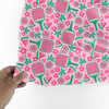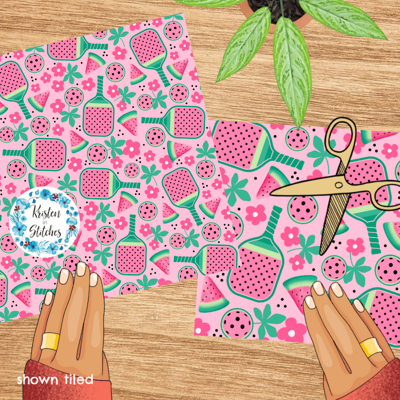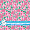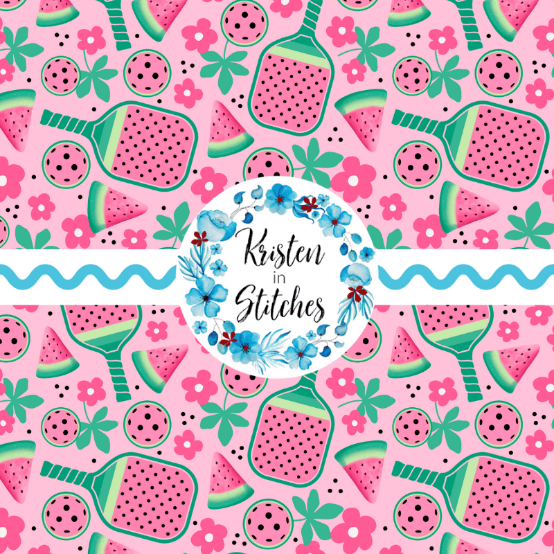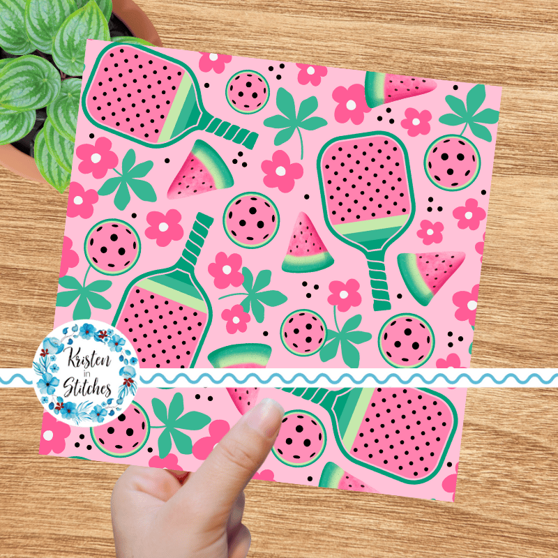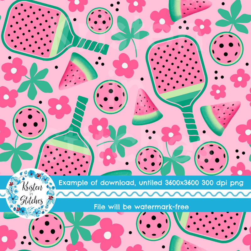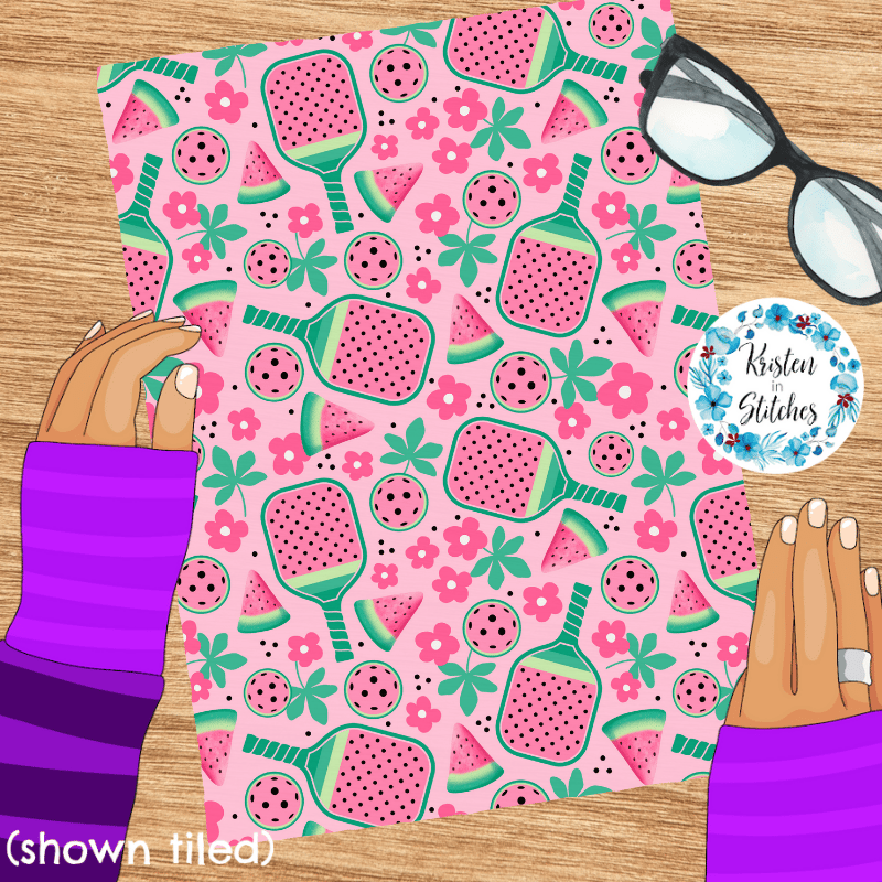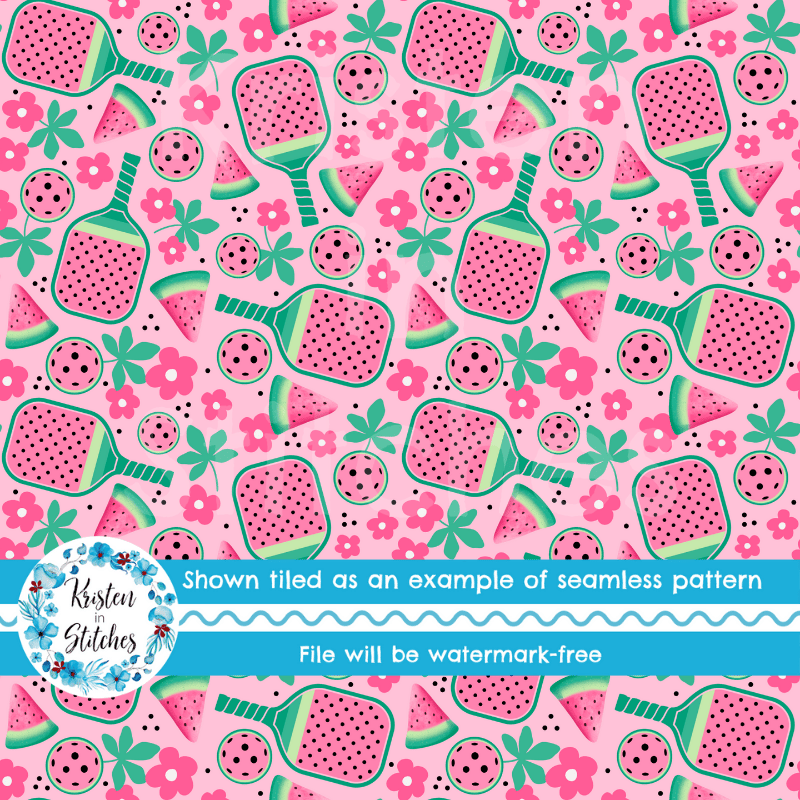 Pink Watermelon Pickleball Seamless Pattern, Paddles and Balls