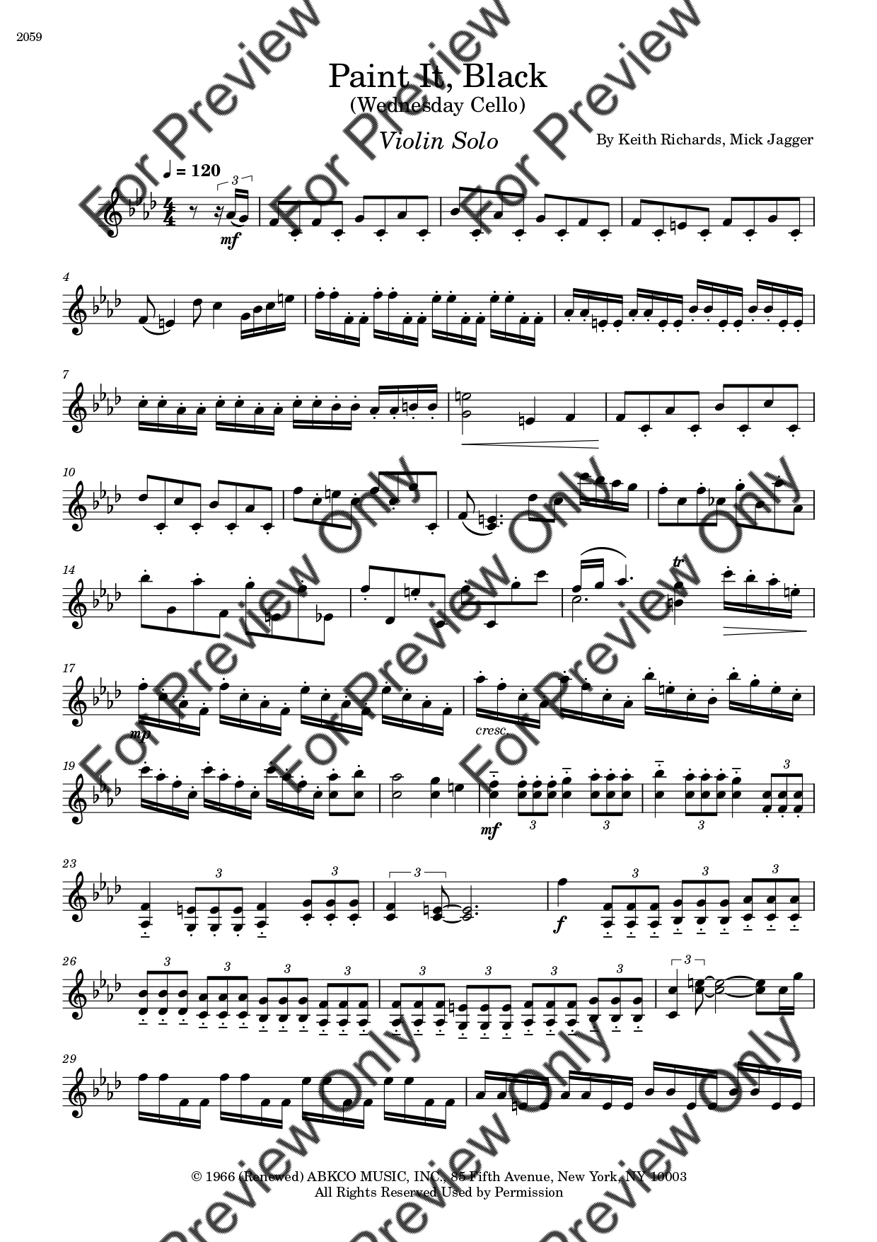 Paint It, Black from Wednesday by Rolling Stones. Arrangement for Violin Solo. With Full Score. Have fun!