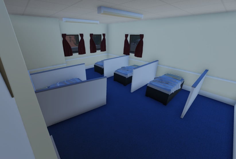 -Detailed 1980s Fire Station with working lights. Dorms Mess and offices.