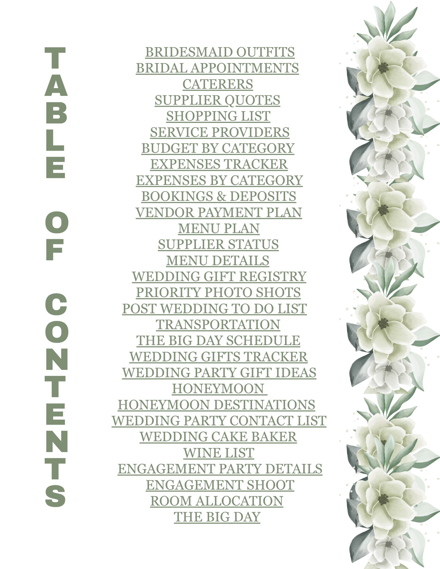 Designed in a soft sage and lavender aesthetic, this planner brings elegance and clarity to every detail of your bridal journey.