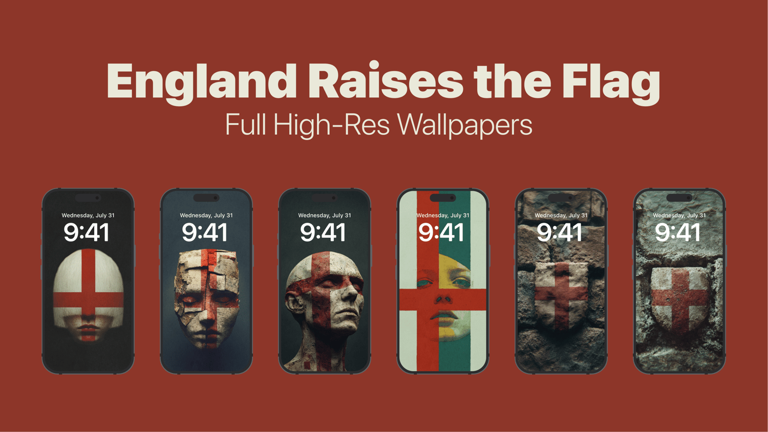 Unfurl the banner on your screen with our England Raises the Flag — High-Res Wallpaper Collection! This exclusive collection features 6 stunning, high-resolution wallpapers inspired by the English flag for your phone for just $5.99.
