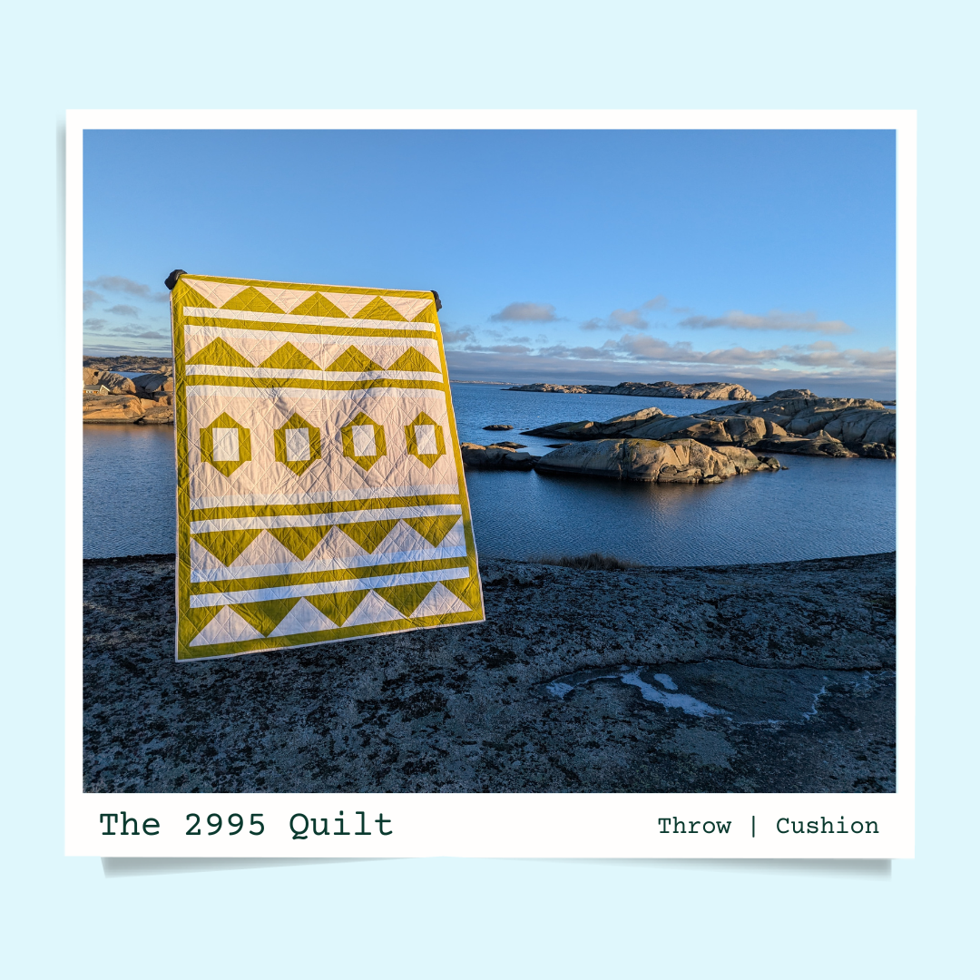 The 2995 Quilt is a beginner friendly modern quilt pattern that comes in two sizes: Throw (52" x 70") and Cushion (20" x 20"). You will receive fabric requirements, cutting instructions, and detailed piecing and assembly instructions.