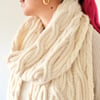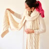Asperitas can be worked in worsted weight yarn held together with a strand of fluff like Suri alpaca or mohair, or in chunky weight yarn held single. The length of the scarf is easily adjustable to any desired, with three sizes provided for yarn usage estimation. The pattern contains both the charts and row-by-row instructions, plus a video example of how to knit cables without the cable needle.