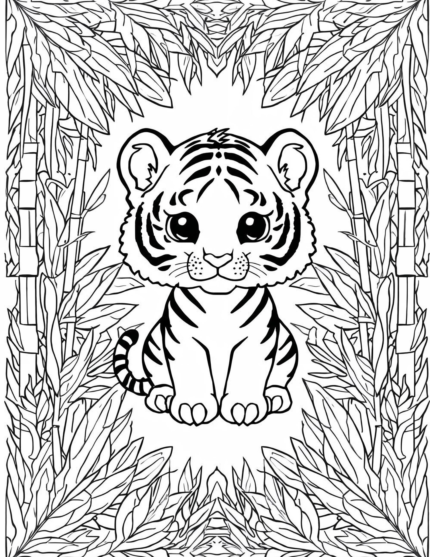 Majestic Tiger: IntricaCute Wild Animals: Easy Coloring Book for Kidste Digital Coloring Page