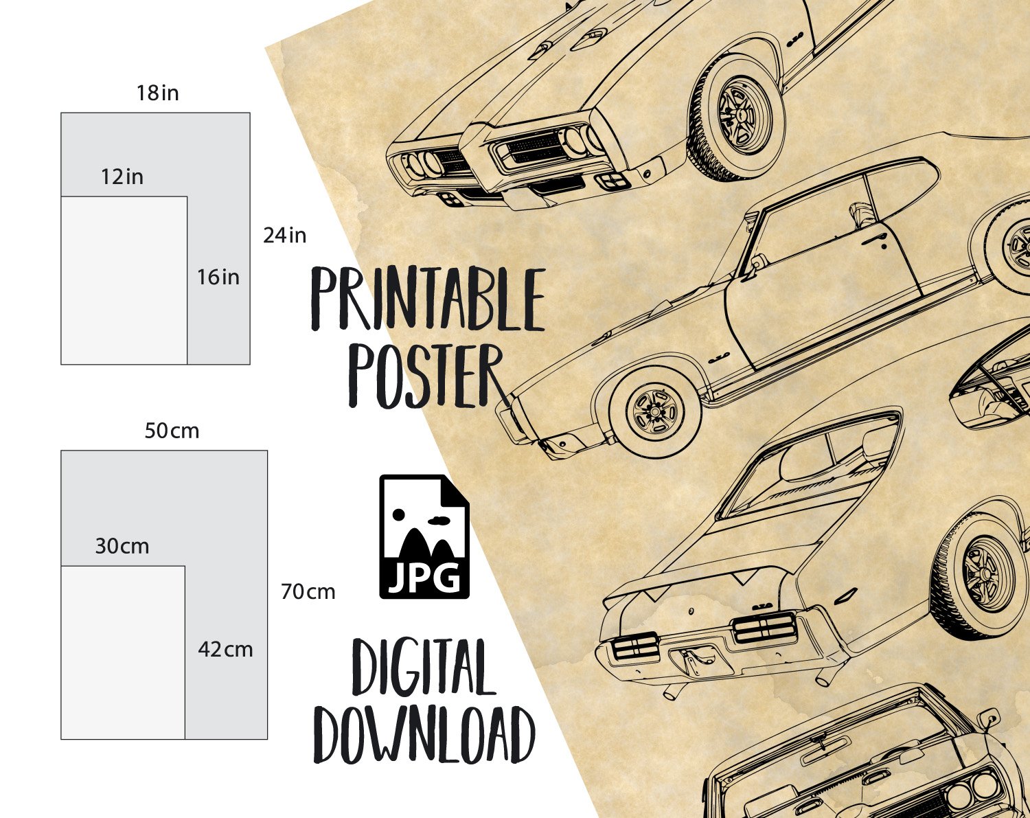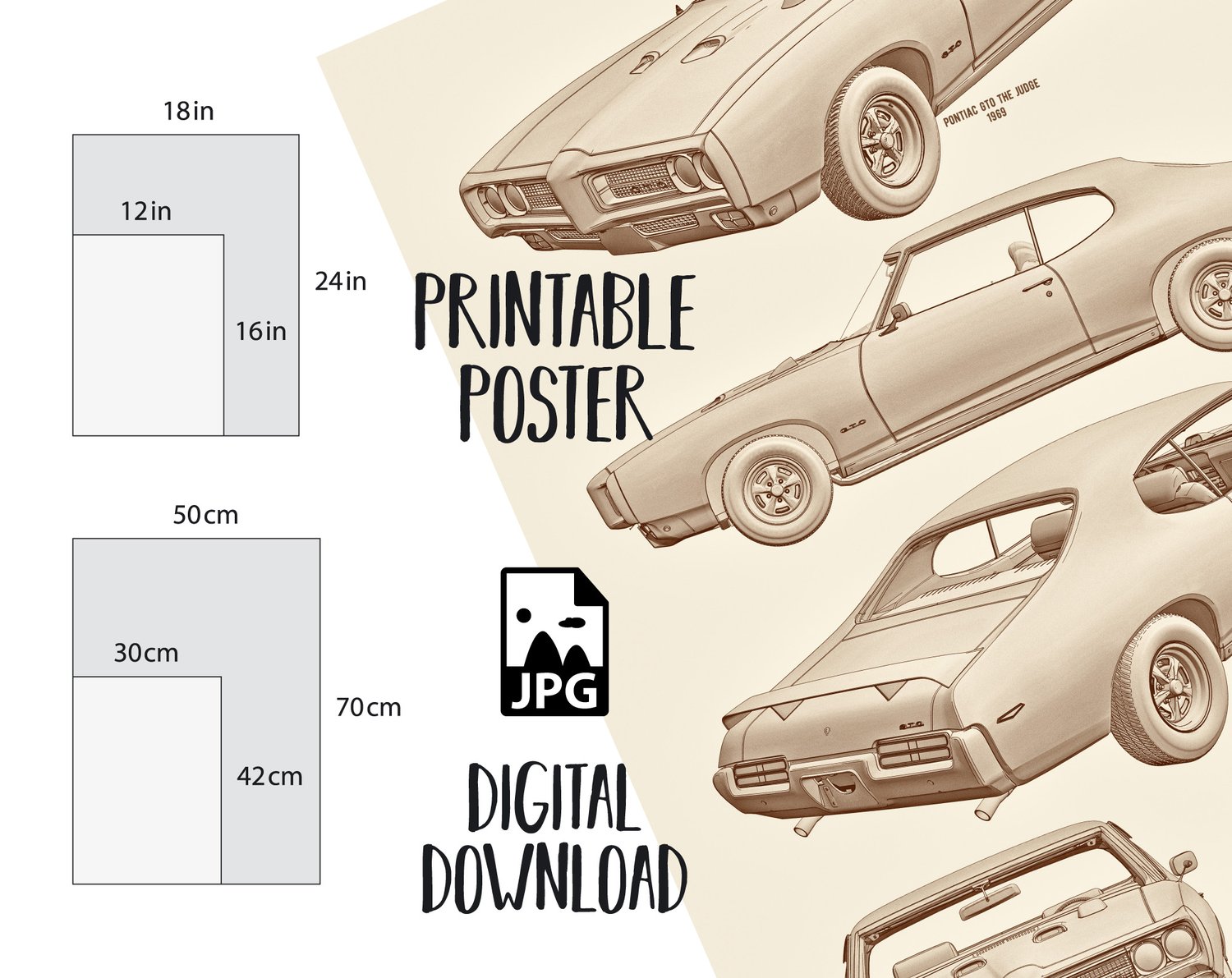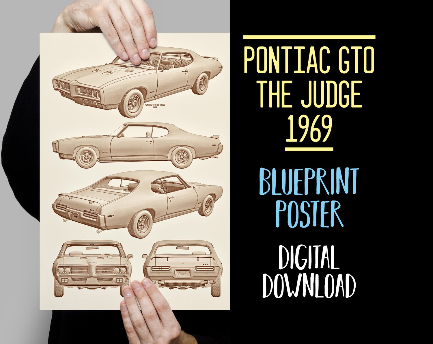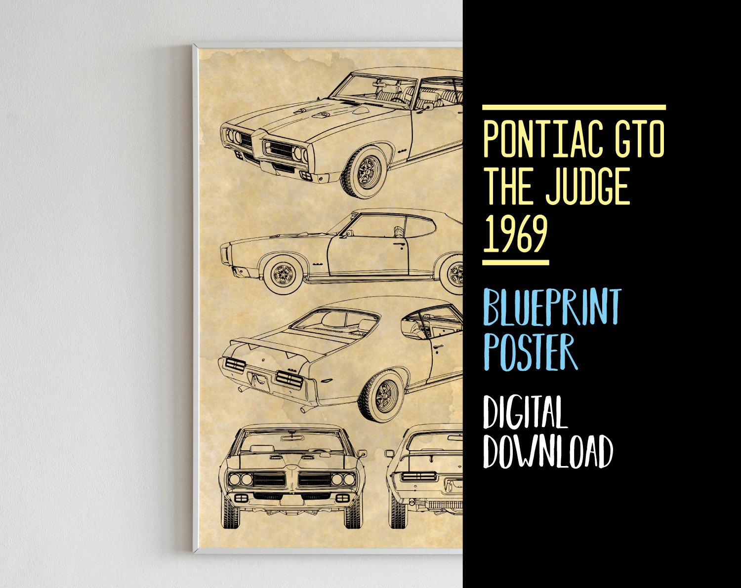 1969 Pontiac GTO The Judge Blueprint Poster, Digital Download