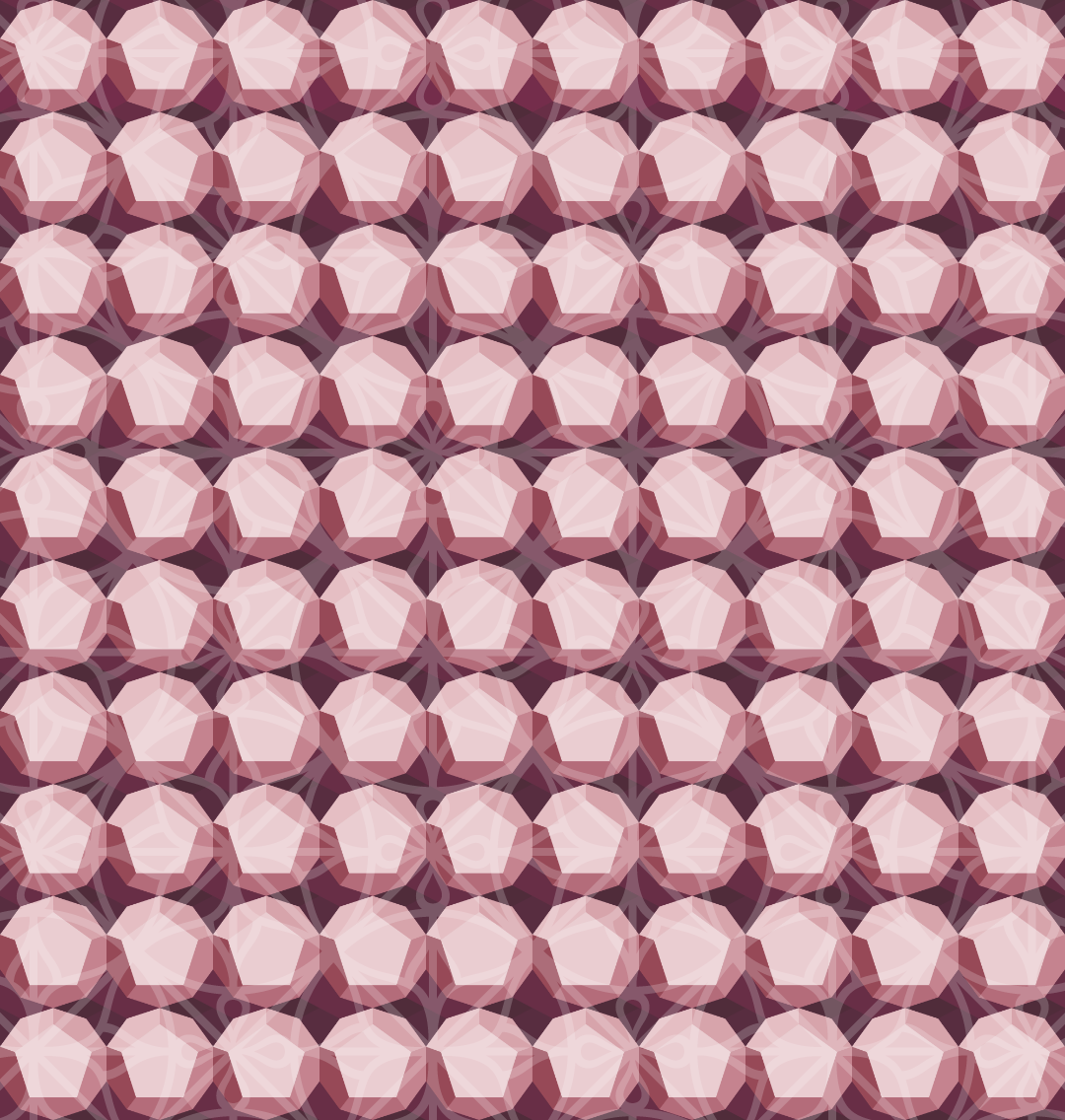 Old pink dodecahedron seamless vector pattern. 3D geometric background illustration of polyhedra.