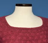 This is a very comfortable, easy-to-wear pullover. The square neck is flattering to many body types, and the side slit allows the pullover to skim the hips without clinging. The body begins with a separate front and back which are joined at the top of the slit. The body is worked in-the-round from the top of the slit to the armholes, then the front and back are worked separately to the shoulders. The sleeves are picked up and worked down from the armholes with short-row shaping to shape the sleeve caps, so you can adjust the sleeve length as you wish.